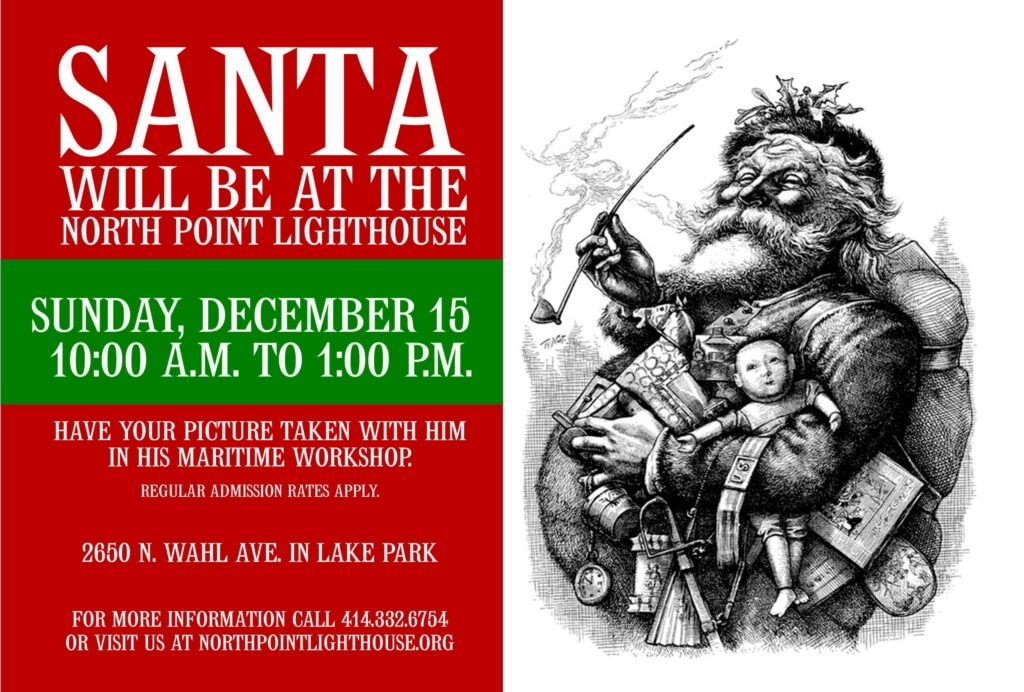 Santa is making a stop at the North Point Lighthouse Museum in Lake Park, and you can have your picture taken with him in his maritime workshop. Regular admission rates apply.
