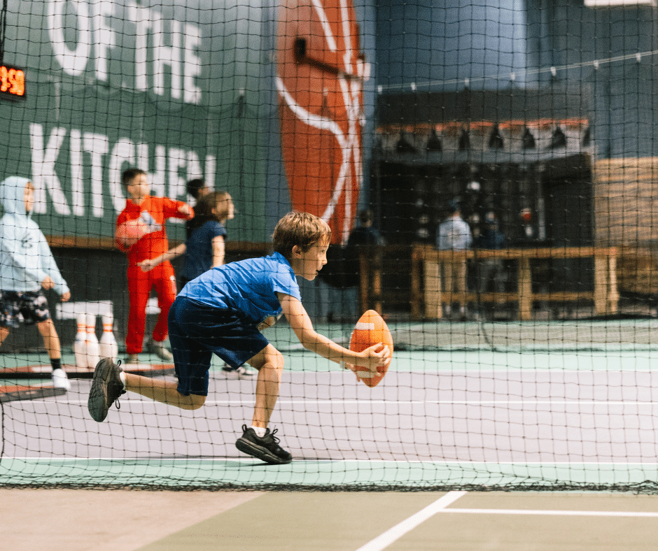 Nerf, Football bowling, Basketball Connect 4, Wiffle Ball, and more! Your little sports star and their friends will have a blast with all the fun games, and you’ll love how easy we make it for you. Plus, who doesn’t love pizza?
