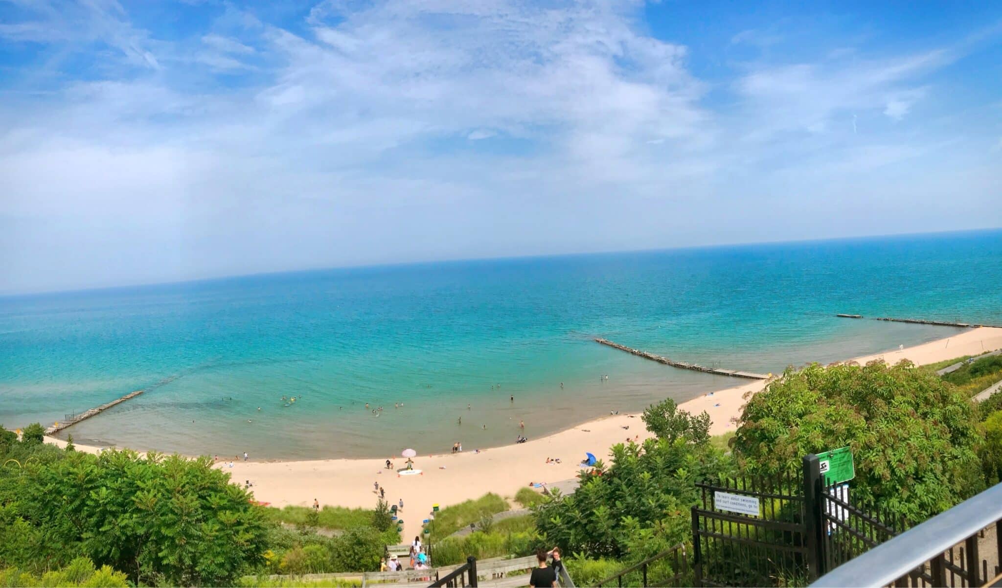 When you first arrive at Atwater, you’ll see a playground in the park overlooking the lake. When you’re ready to head down to the beach, you can get there via an impressively steep set of stairs, or opt for a more gentle winding path. Once there, you’ll find 800 feet of flat, open beach. You’ll be steps away from the city and shops on Capitol Drive, but the wild foliage of the tall bluff behind you will make you feel far from the city streets.