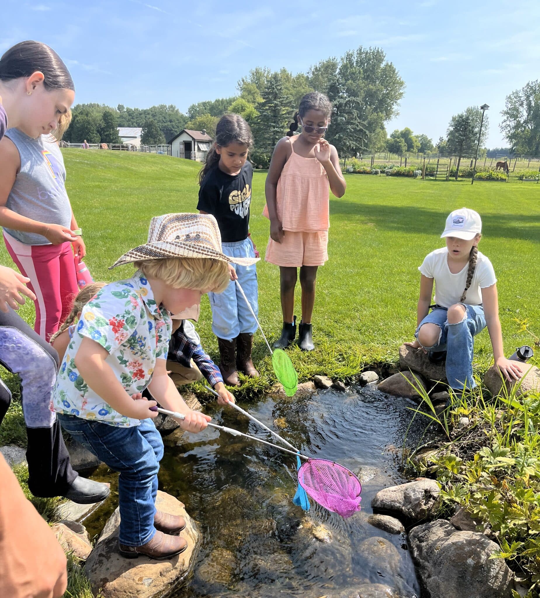 At Diettrich Farm, children are immersed in farm experiences– horses, chickens, cats, pond life, natural playground and more. Daily activities include grooming, riding, barn chores, nature exploration, outdoor play, and art.
