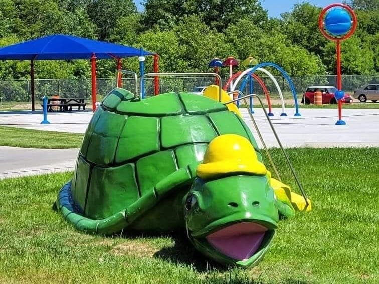 In 2021, the Village of Slinger installed a brand new splash pad and playground where a swimming pond used to be (Fireman’s Park Beach). See if you can spot the turtle slide that was rescued from the old beach. Running short on battery from taking too many photos and videos of your kids splashing around? The red park benches double as solar charging stations.