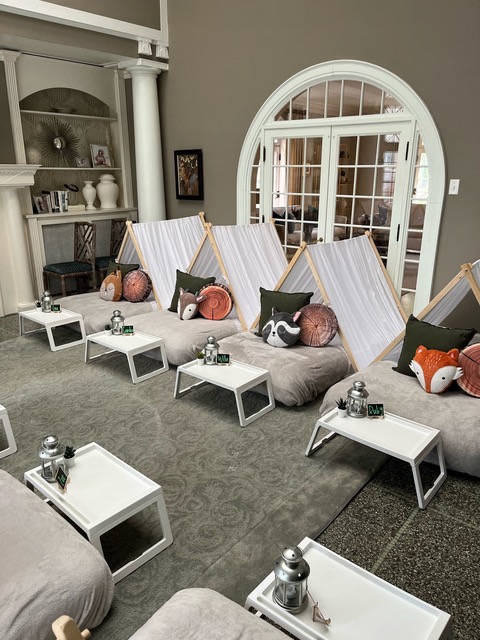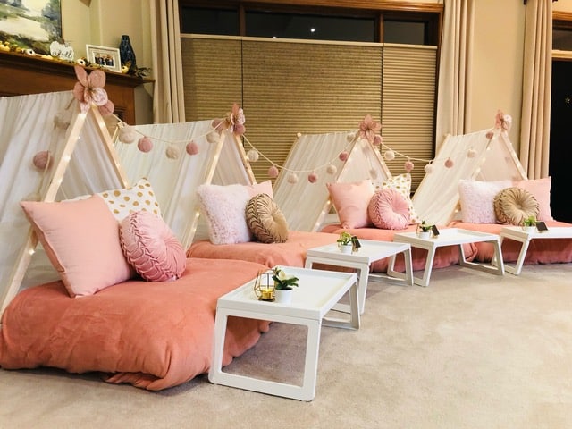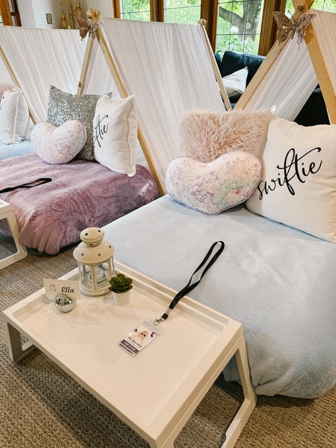 Their indoor glamping tent sleepovers bring charm and whimsy to the traditional slumber party.