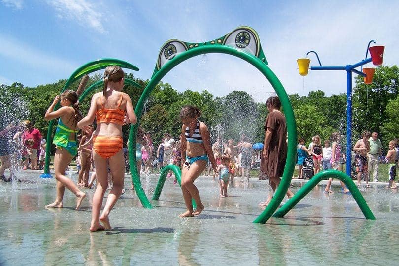 There’s something for the whole family at Regner Park in West Bend. In addition to the splash pad, there’s a swimming beach, a café with food and beverage concessions, a fish pond, playgrounds, athletic fields, a labyrinth, paved walkways and more. Wristbands are required! It’s open daily from noon to 5:00 p.m., Memorial Day through Labor Day.