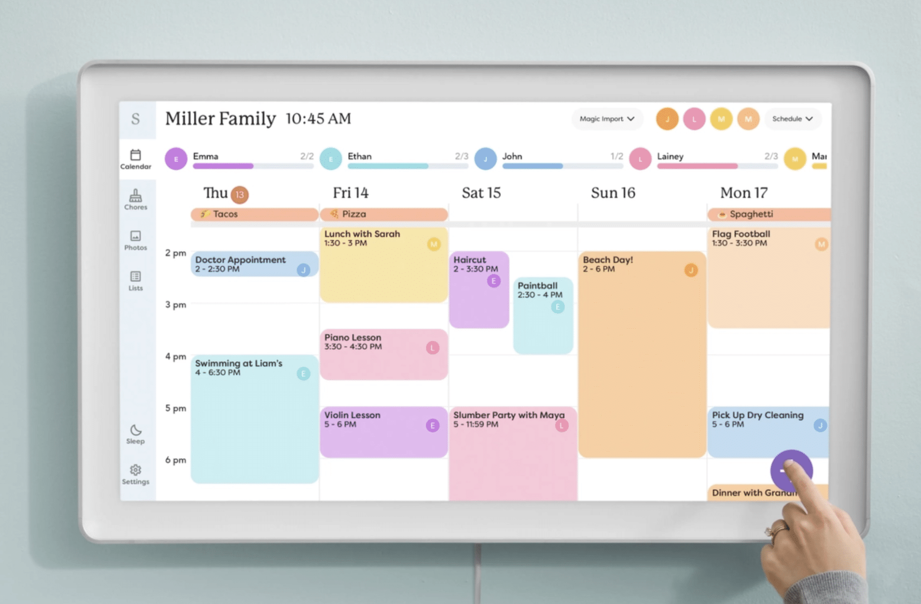 Skylight Calendar gets the whole family organized with scheduling, meal planning, chores and customizable lists all in one beautiful display.