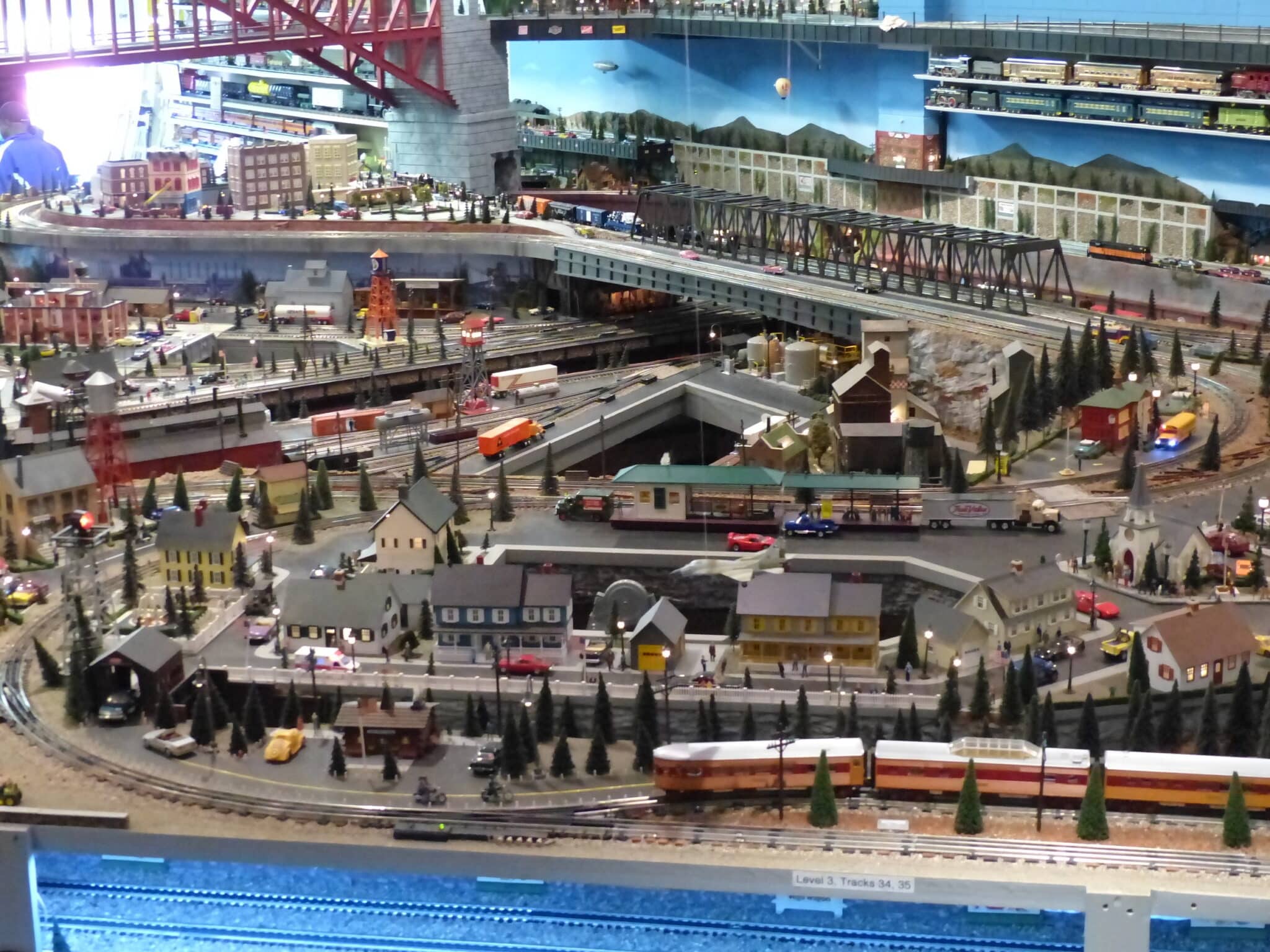 Visitors will see a large exhibition of toy trains running on our layouts, often from different eras and different scales and gauges. The main layout in our 3000 square foot facility includes interactive buttons allowing visitors to operate over a dozen animated scenes. The walls of our club feature displays of vintage engines, rolling stock, and related toy train and railroad memorabilia some of which date back over 100 years.