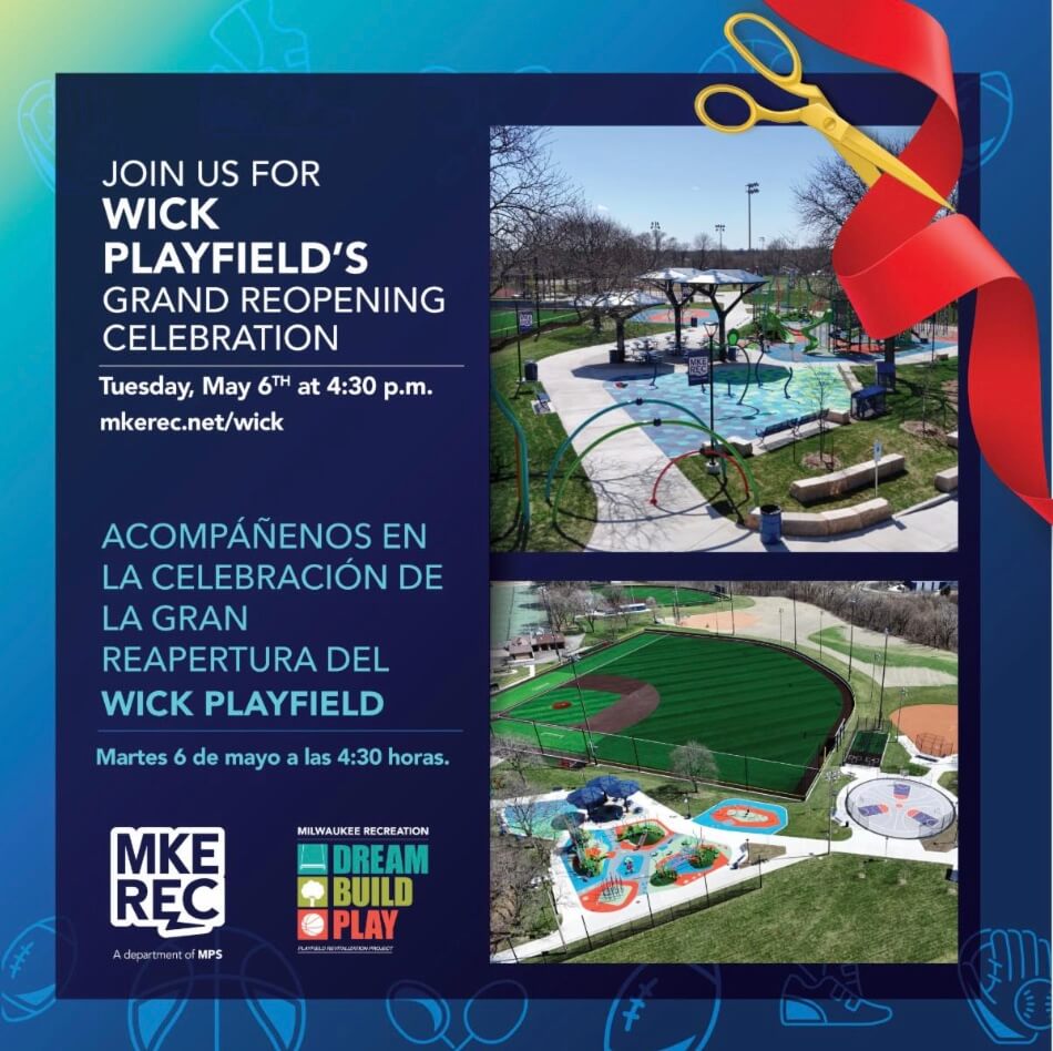 Wick Playfield 4929 W Vliet St, Milwaukee, WI, United StatesMILWAUKEE RECREATION TO HOLD GRAND REOPENING CEREMONY FOR NEWLY RENOVATED WICK PLAYFIELD Event is set for Tuesday, May 6 at 4:30pm Milwaukee Recreation will hold a grand reopening ceremony on Tuesday, May 6 at 4:30pm to mark the completed renovations to Wick Playfield (4929 W. Vliet St.) The event is open to the public. Please […]