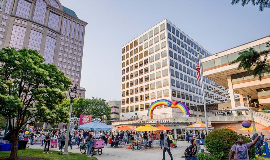 In winter, Red Arrow Park transforms into Slice of Ice, Milwaukee’s own version of Rockefeller Center, with families flocking downtown to skate, sip hot cocoa, and enjoy the seasonal atmosphere. But now, thanks to the Summer Spinz events, the rink might be open year-round as a roller skating venue.