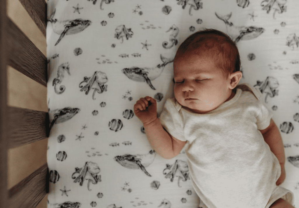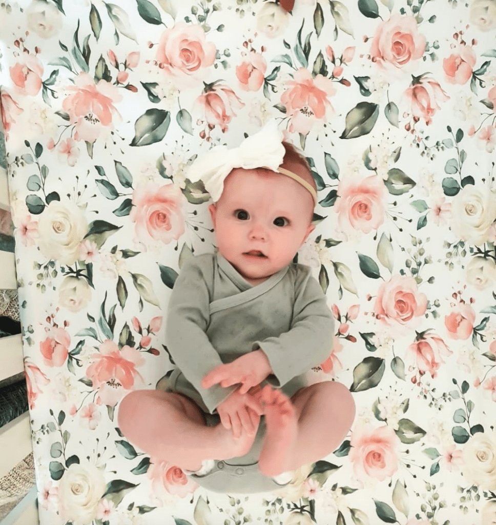 Level up your regular crib with a set of printed crib bedding. When you’re baby is first born, they’ll like just need a fitted crib sheet, and you can add more bedding as they get older and it’s safe to do so. This print is from @mamashackbaby.