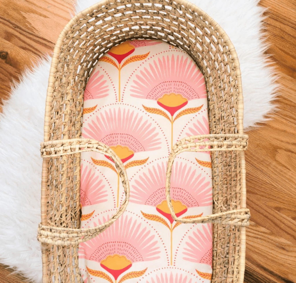 A bassinet is a bed made specifically for babies from the newborn stage until about four months old. They are shaped like an oval, are typically mobile, and have mesh or cloth sides. A bassinet will be so handy to you in those early days, and this is the bassinet you didn’t know you needed. It’s from Sacred Bundle in Australia.