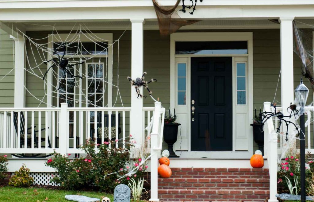 - Add some cobwebs: Create a haunting entrance or front porch adorned with a large spider web and faux spiders. You can buy fake cobwebs or use tattered, dyed cheesecloth.
