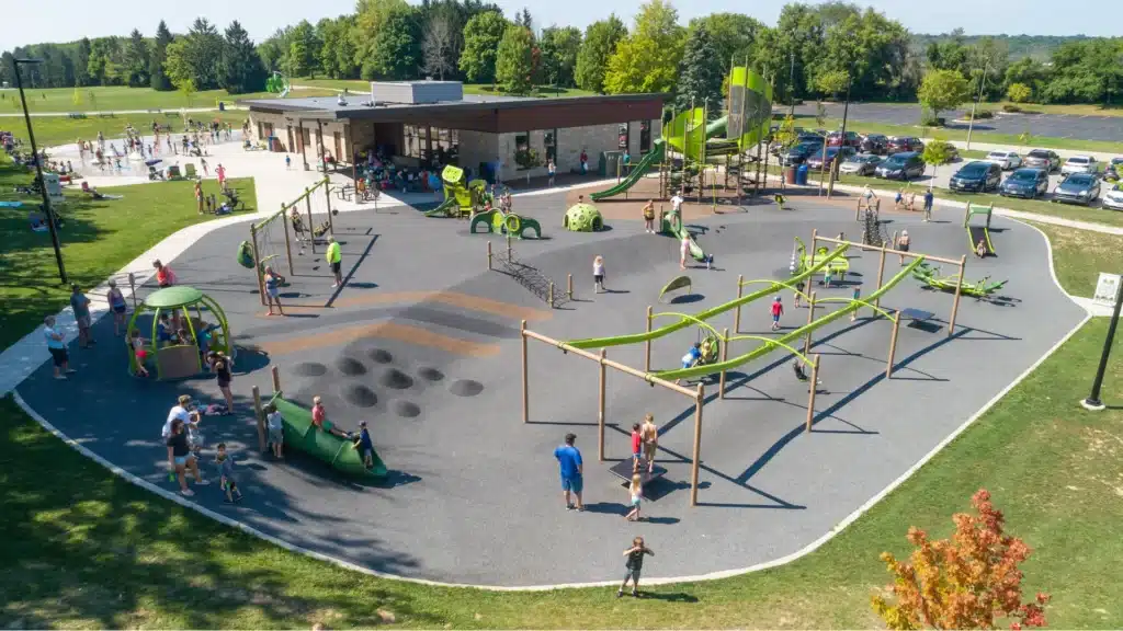 Readers are raving about The Grove at Village Park in Sussex, about a 30-minute drive from the city of Milwaukee. The 14,000-square-foot Village Park in Sussex includes a zip line, tall towers, climbing structures, slides, and more. There’s also a 5,200-square-foot inclusive splash pad that features three different areas of play: active, family and toddler.