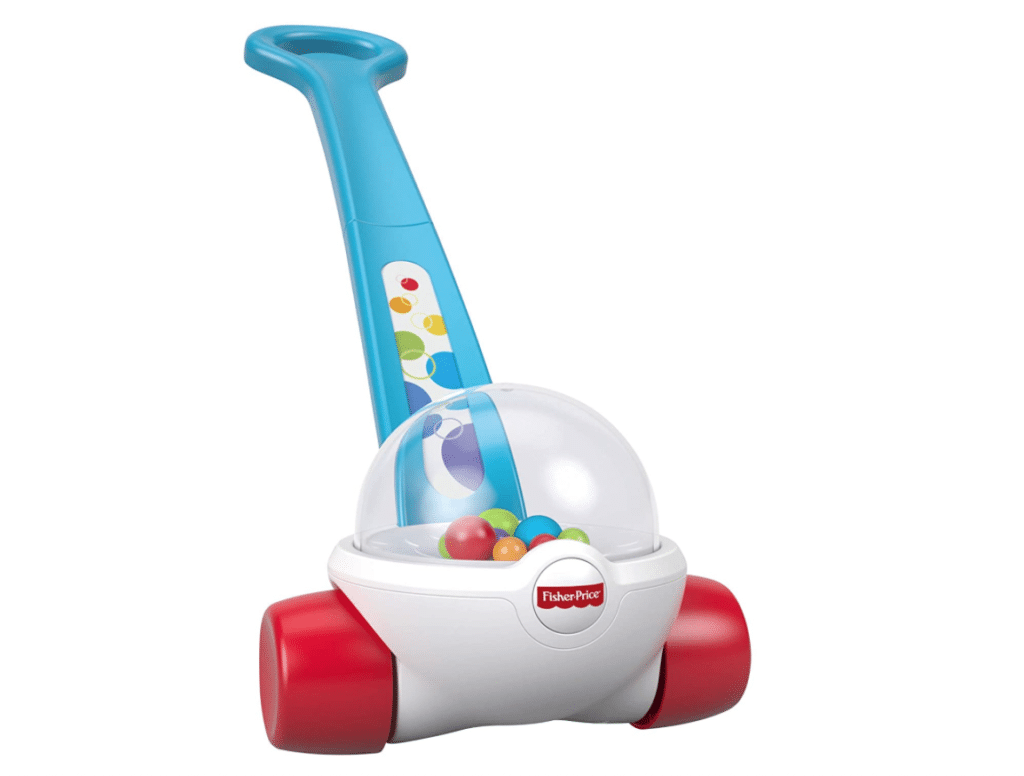 This classic Fisher-Price corn popper toy has colorful balls that pop and move as your toddler rolls it around. The motion and sound keep your little girl entertained, making it a fun toy for indoor or outdoor play.