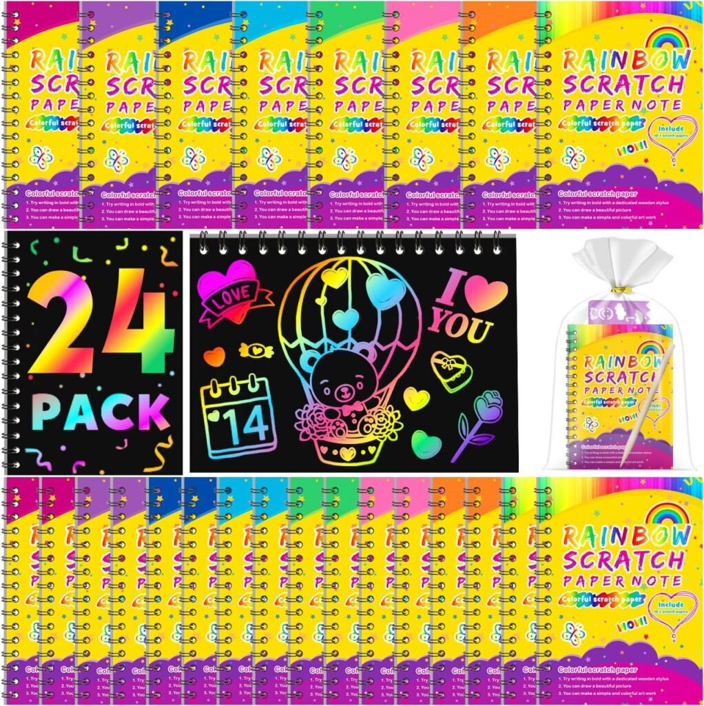 Each rainbow scratch pad notebook comes with a stylus pen and reveals vibrant rainbow designs as you scratch. They are perfect for party favors.