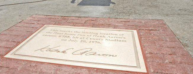 - You’ll see the commemorative plaque noting the landing spot of Aaron’s 755th home run.