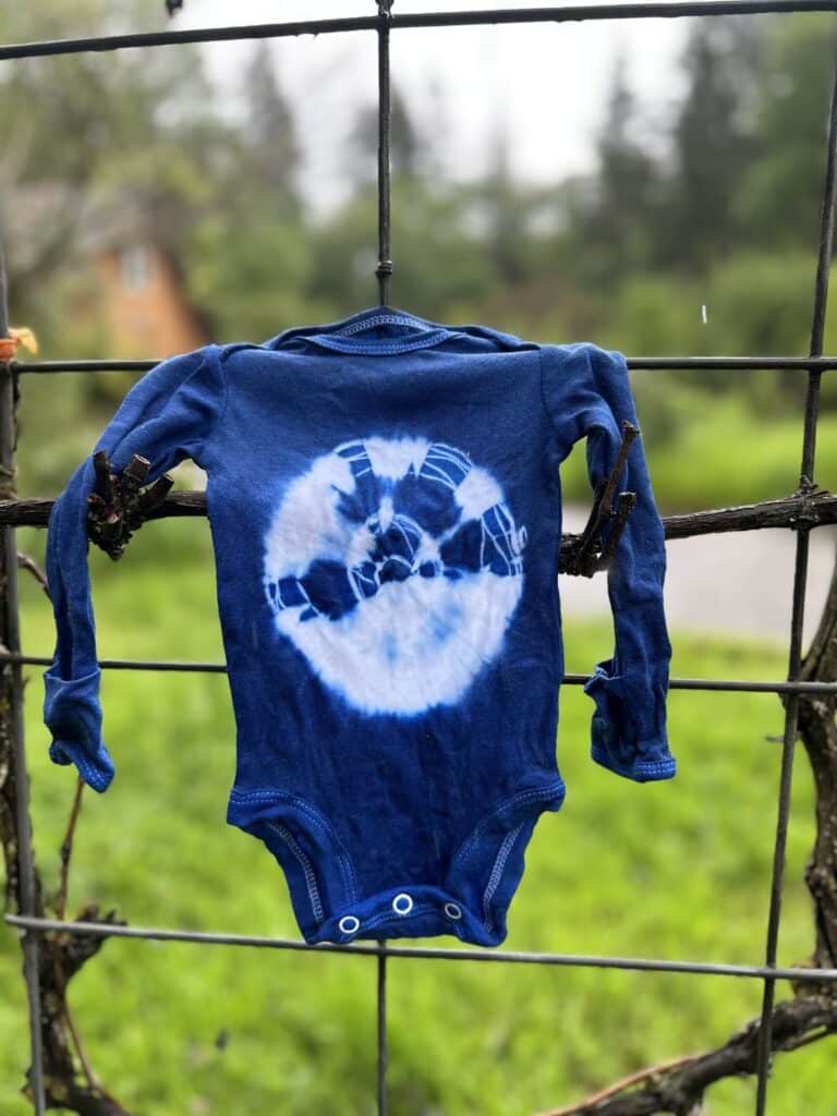 After dyeing, let your indigo tie dye sit for at least 24 hours before rinsing. This allows the indigo to fully oxidize and bond to the fabric fibers.