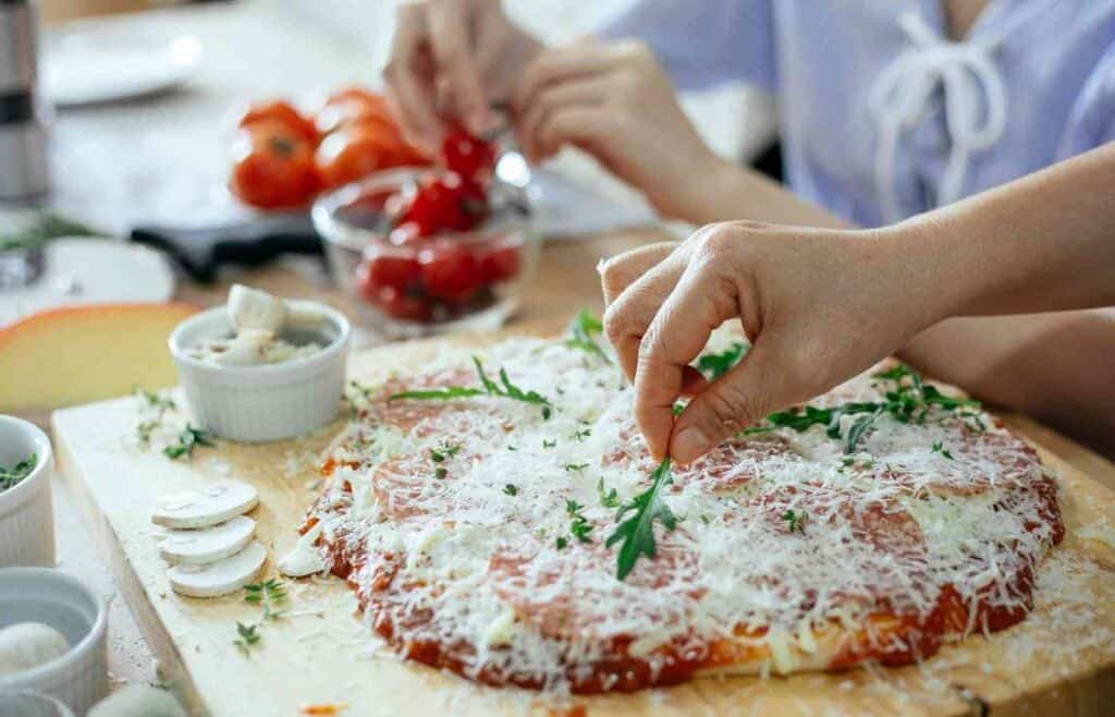 Buy individual crust and some sauce for each guest, and then put out some toppings for them to create own pizza.