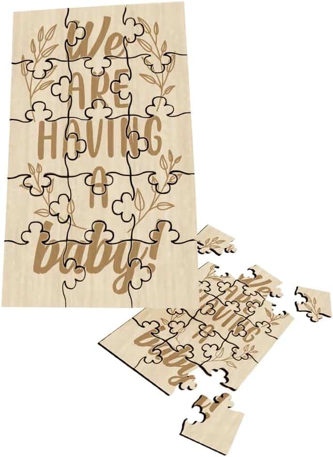 If your family has been noticing you acting differently, surprise them with a custom pregnancy reveal puzzle! As they piece together the puzzle, they’ll unveil the exciting news. Personalize the design on platforms like Zazzle or Shutterfly to create a keepsake your family will treasure forever. This is one of the most interactive pregnancy reveal ideas for family gatherings.