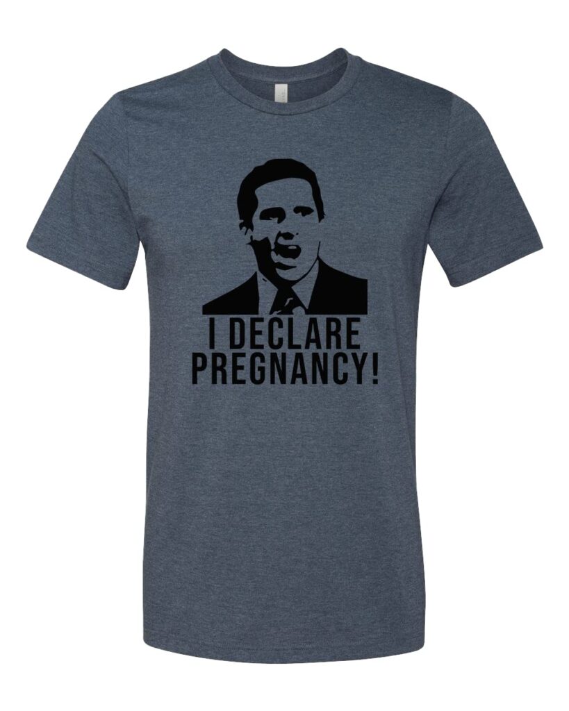 When Michael Scott dramatically declared “I declare bankruptcy” on “The Office” series, it was forever etched in fan’s minds. Now, you can re-create it with this I declare pregnancy t-shirt.
