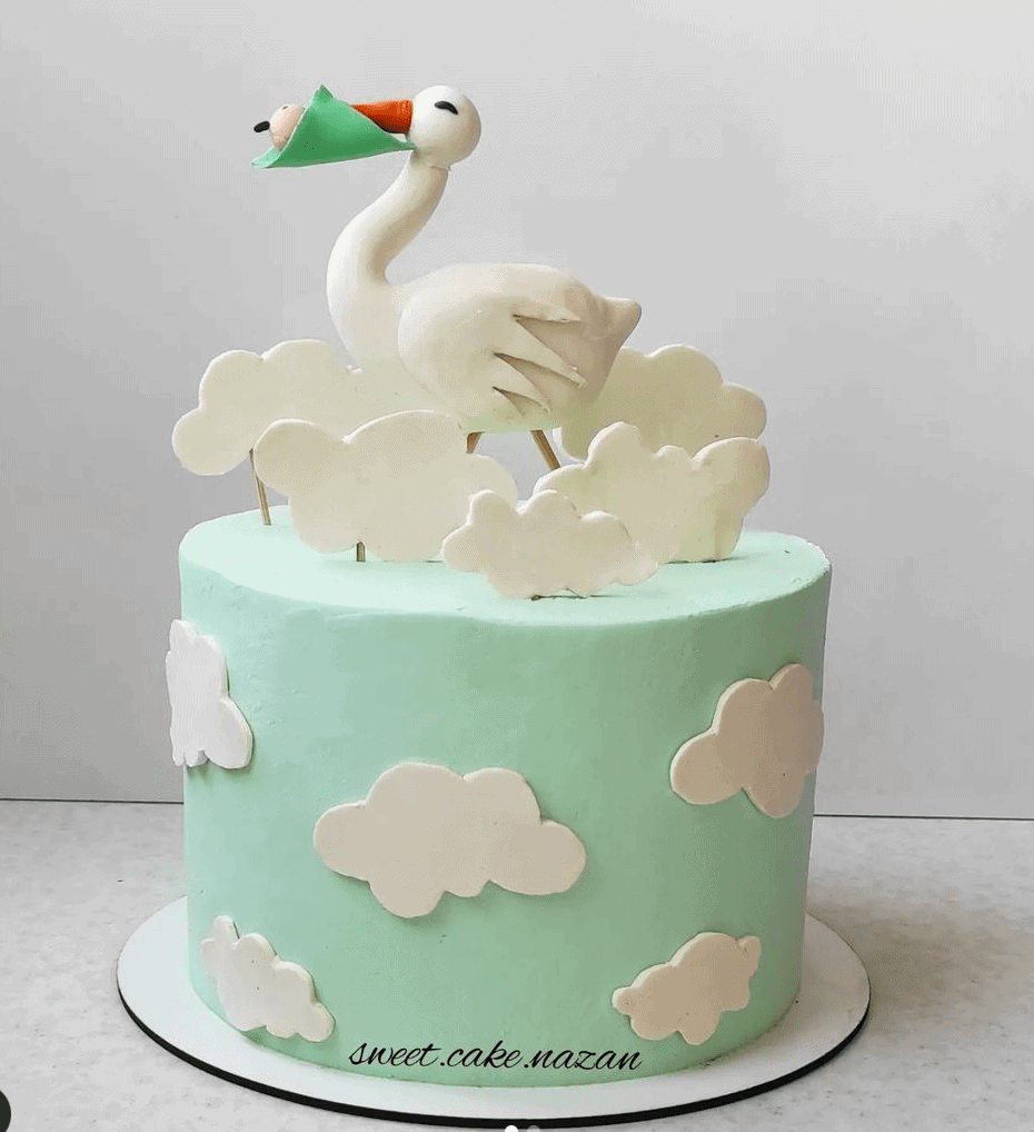 Celebrate your pregnancy announcement with a custom stork-themed cake! This whimsical design features an adorable stork carrying a baby. Choose colors and decorations that match your reveal theme to create a cake that’s as special as your announcement.