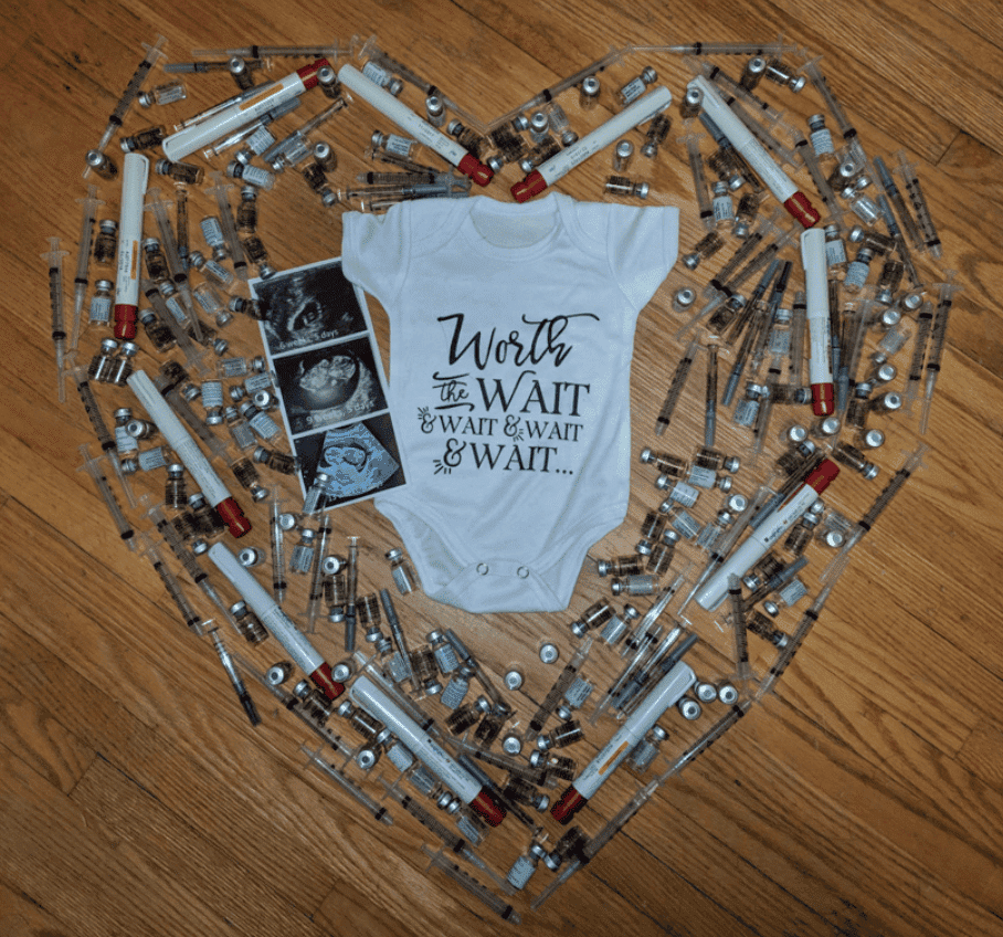 This family showed just how hard they worked to become pregnant by forming all of the fertility medical equipment they used into the form of a heart. This touching display is a beautiful way to express that the difficulties and challenges were worth the wait.