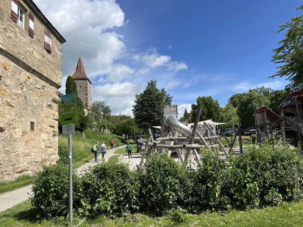 We exited the walls near Rodergasse and the Roderturm Tower to take a break and let the kids play at a nearby playground. This playground, situated just outside the city walls, quickly became a favorite for our children—they kept asking to return!