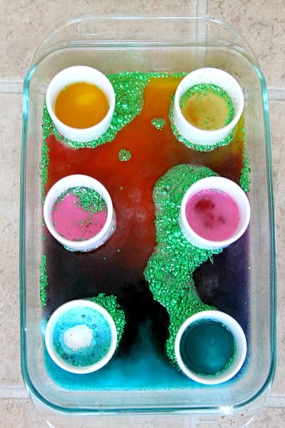 This super easy baking soda and vinegar volcano eruption is a real crowd-pleaser for kids of all ages, and your kids will be begging to do it over and over again!
