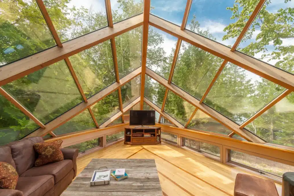 The Glass House has walls that are completely, yes, made of glass. You’ll feel completely at one with the elements.