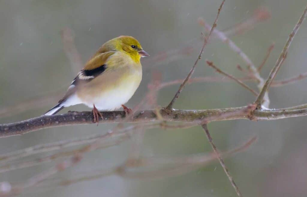Description: Small, vibrant yellow birds in summer, they turn olive in winter. They have a distinctive flight with a “po-ta-to-chip” call.
