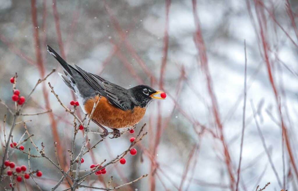 Where to Find: While many migrate, some robins remain in Wisconsin during winter, especially in areas offering fruit-bearing trees and shrubs. Look for them in wooded areas, parks, and yards. However, their visibility decreases as they form flocks and roost in wooded areas.