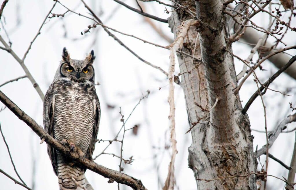 Where and When: Woodlands and urban parks, year-round residents. Great Horned Owls are common in winter woods, while Eastern Screech Owls may be found in tree cavities.