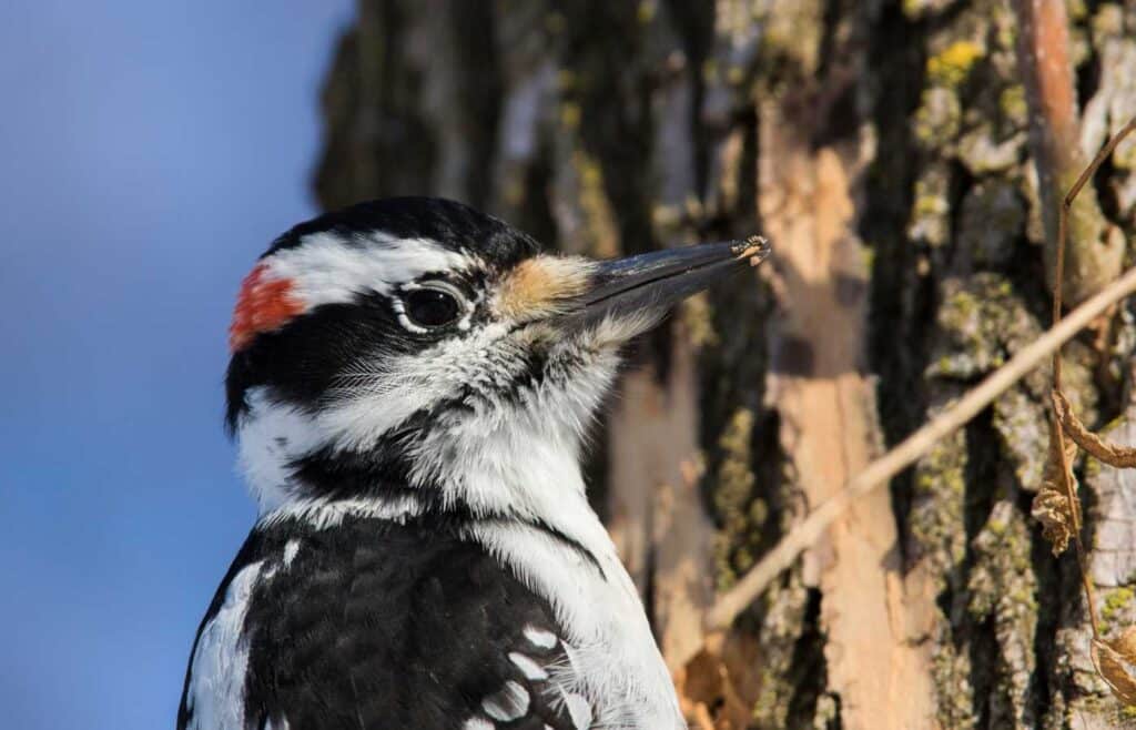 The Hairy Woodpecker, with its larger stature and noticeably longer bill compared to its cousin, the Downy Woodpecker, is a striking figure in the forests and wooded areas of Wisconsin. Its black and white plumage stands out against the bark of trees, making it a fascinating subject for bird watchers and nature enthusiasts alike. The Hairy Woodpecker’s bold appearance, including the flash of white down its back and its commanding presence, adds to the allure of Wisconsin’s natural landscapes.