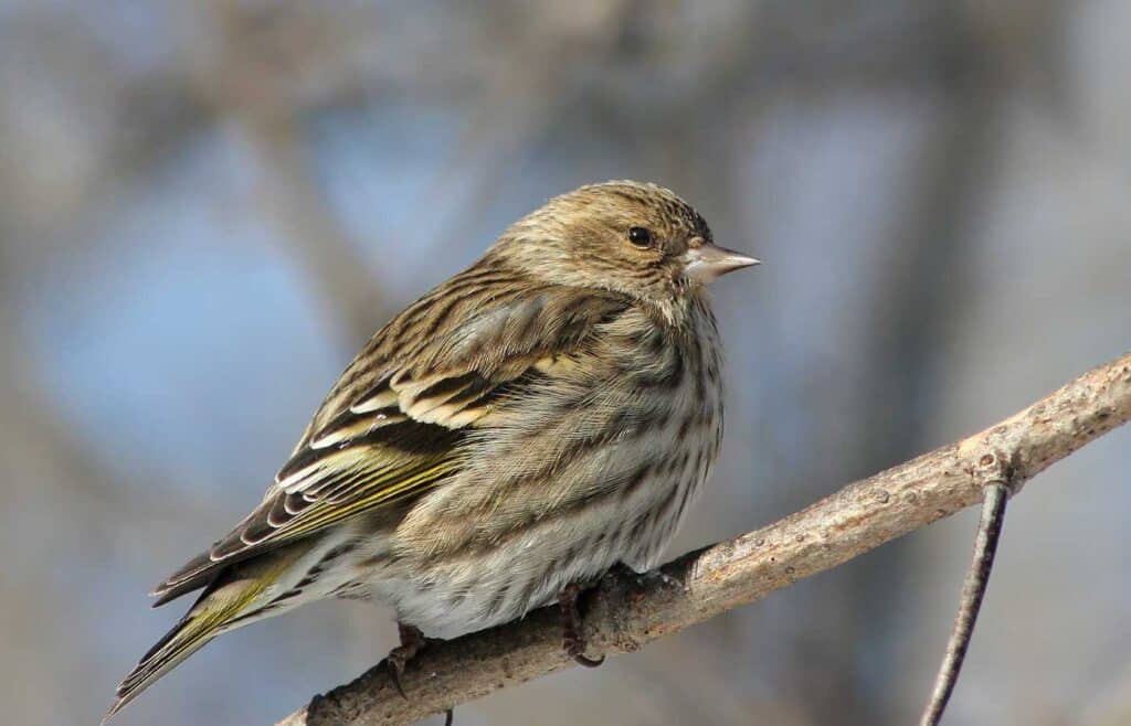 The pine siskin may easily blend with the more familiar faces of the finch family, thanks to its small, brown, streaky appearance complemented by distinctive yellow wing bars. However, these birds carry their own unique charm and mystery, especially given their unpredictable visits.