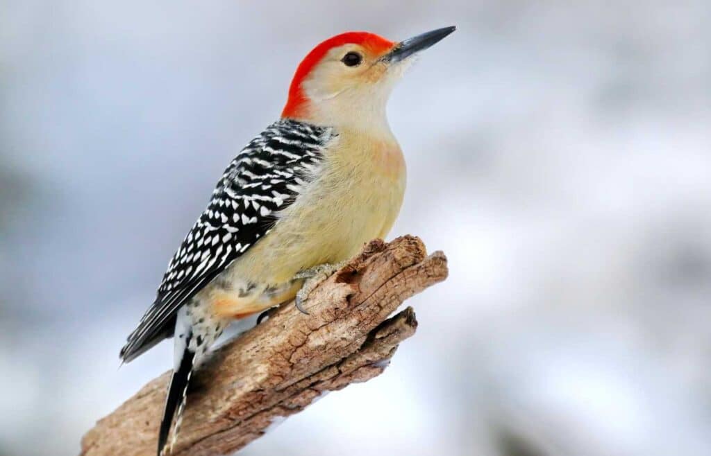 The Red-bellied Woodpecker, with its striking red cap and nape (in males), and its zebra-striped back, is a lively presence in Wisconsin’s forests and backyards. Despite its name, its belly’s red hue is often subtle and hard to see.