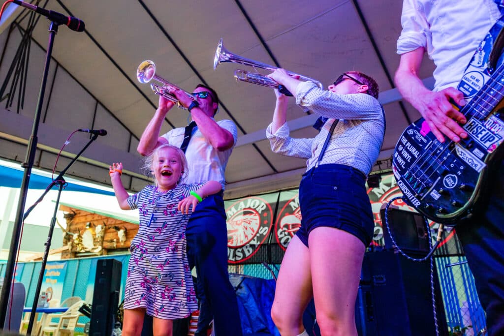 From acoustic sets to full bands, nearly 30 free stages are active throughout the Fairgrounds. Families might also spot stilt walkers, balloon twisters, and roaming acts between exhibits and food stands.