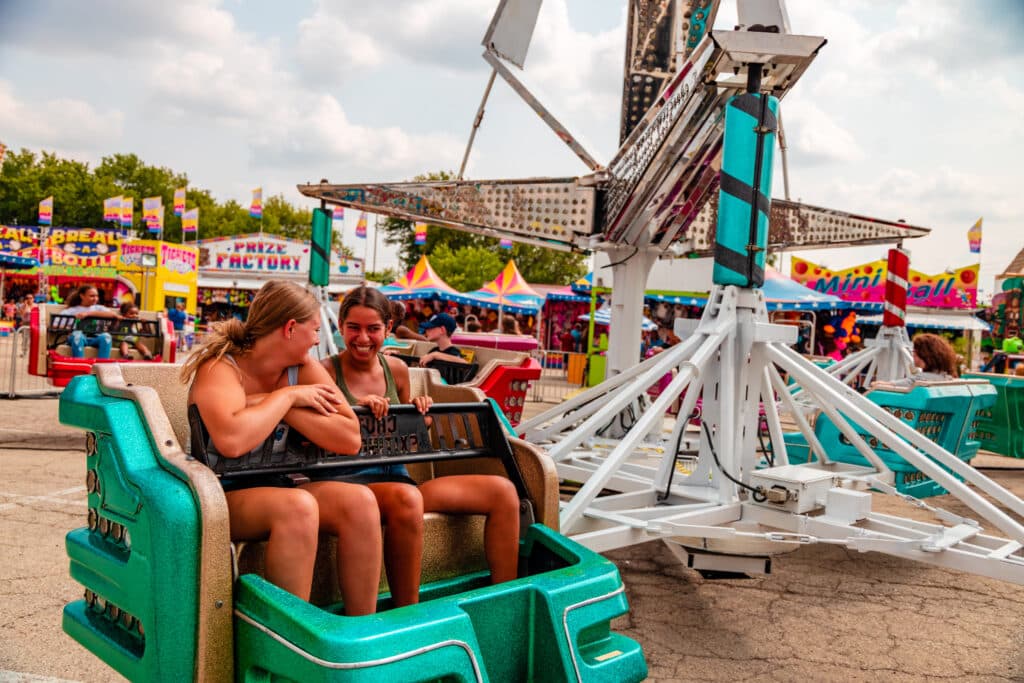 Tucked along the west side of the Grand Walkway, the SpinCity Kids Area is designed with younger Fairgoers in mind. Most rides here have lower height requirements (under 48”), and many allow kids as small as 24″ to ride with an adult.